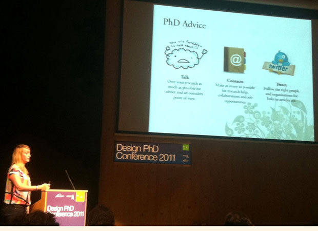 Marzia Mortati finished off the day with her PhD Designing Connectivity. Her suggestions from her process were to consider the environment you're doing your PhD in and be prepared to go somewhere else for a while if need be (she was studying in Italy, but found that relocating to England for a while and collaborating with Lancaster Uni was key into getting the PhD done).